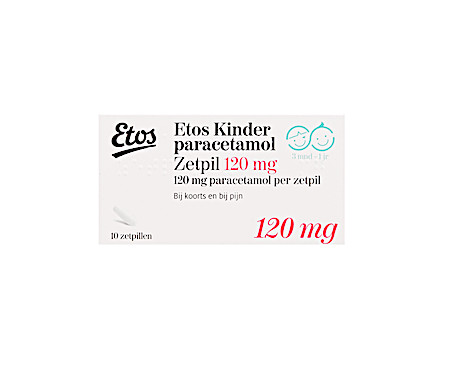 Etos Kinderparacetamol Zetpil 120 mg bevat paracetamol. Paracetamol behoort tot de groep van geneesmiddelen die bedragen aan een pijnstillende en koortsverlagende werking. De kinderparacetamol zetpil is te gebruiken bij: koorts en pijn bij griep, verkoudheid, koorts en pijn na inenting, hoofdpijn, kiespijn, zenuwpijn, spit en spierpijn.