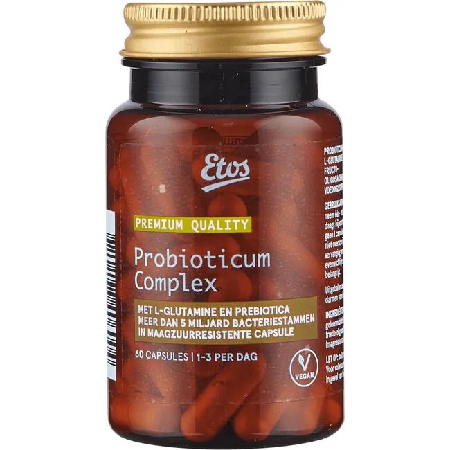 Etos Probioticum Complex Plus is een uitgebalanceerde mix van bacteriën, die van nature in de darmen voorkomen.