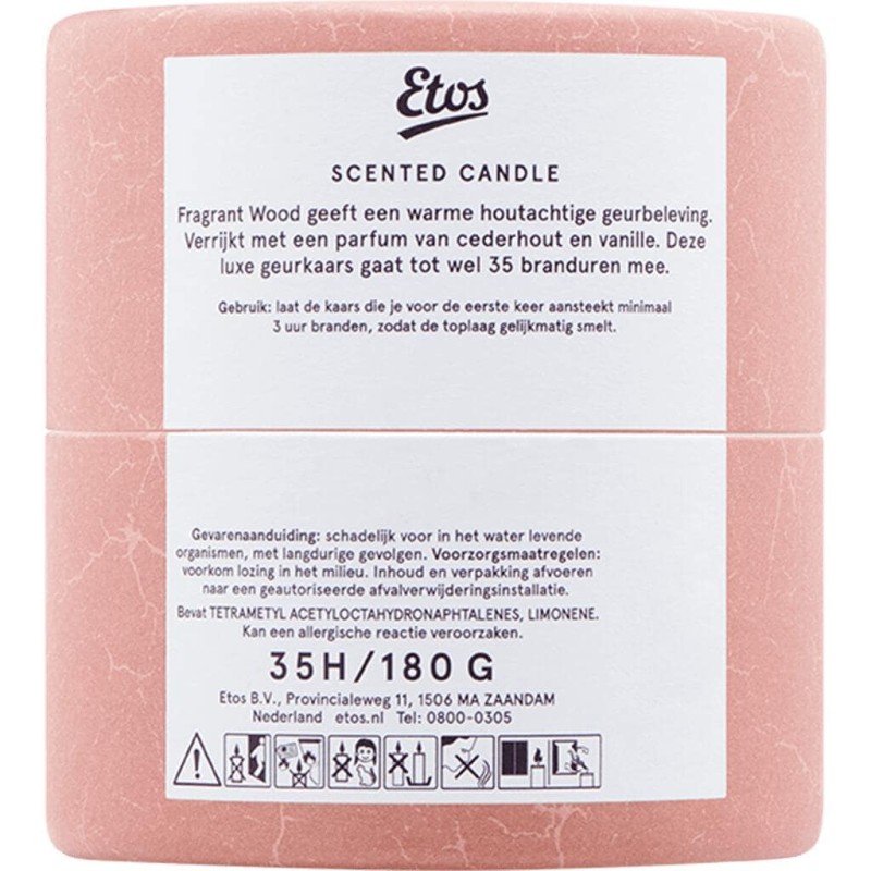 Etos geurkaars Fragant Wood geeft een warme houtachtige geurbeleving.