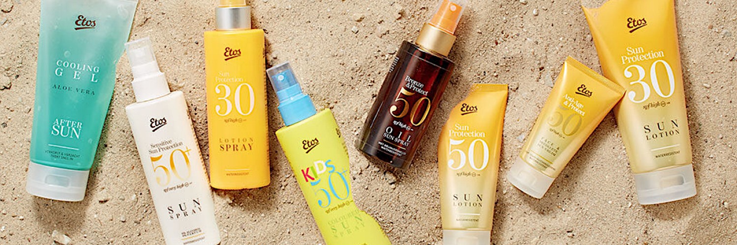 Heerlijk, de zomer staat voor de deur! Maar wel tijd om je huid goed te beschermen tegen zonnestralen. Etos maakt van insmeren een feestje: in het vernieuwde assortiment zonbescherming vind je producten waarmee je je huid goed en slim beschermt, voor het hele gezin en voor je hele lijf. En dat voor een heel fijn prijsje. Kom maar op met die zomer!
