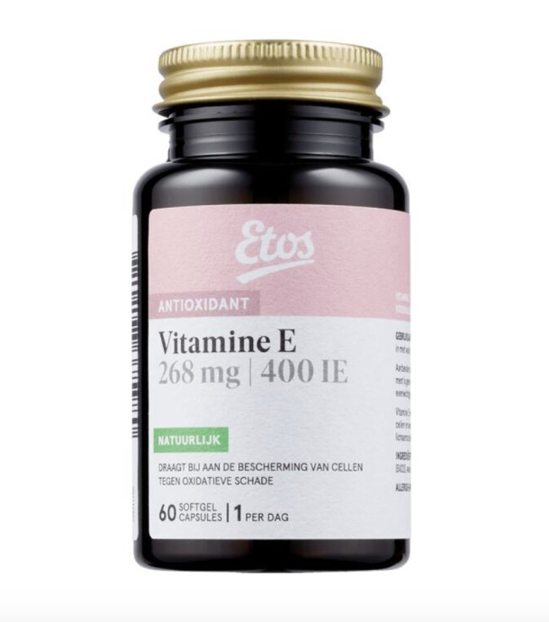 Etos Vitamine E200 Capsules met Vitamine E, ter bescherming van gezonde cellen en weefsels. Helpt het natuurlijk afweersysteem van de lichaamscellen.