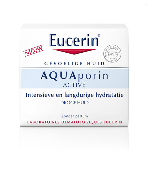 De huid heeft water nodig om efficiënt en effectief te kunnen functioneren. Een goed gehydrateerde huid is zacht, soepel en ziet er stralend uit. Wanneer de natuurlijke beschermingsbarrière van de huid is aangetast, verliest de huid vocht en raakt daardoor gedehydrateerd. Een gedehydrateerde huid ziet er dof uit, voelt trekkerig aan en is niet in staat om irriterende externe factoren te weren. Als gevolg hiervan wordt de huid gevoelig. Intensieve, langdurige hydratatie is dan nodig om de huid er op haar best uit te laten zien en te laten voelen.br /br /De meeste crèmes verbeteren de hydratatie van de huid door het vochtverlies uit de huid te beperken en/of door het vocht te laten binden aan de buitenste laag van de huid met bevochtigingsmiddelen als Glycerine. De huid heeft ook haar eigen hydratatie-systeem - de Aquaporinen. Dit zijn microscopisch kleine kanaaltjes die het water transporteren tussen de cellen en zo de hydratatie van binnenuit verbeteren. Eucerin AQUAporin ACTIVE versterkt hun natuurlijke kracht. De formule bevat Gluco-Glycerol, hét hydraterende ingrediënt waarvan is bewezen dat het de aantallen van Aquaporinen in de huid verhoogt. Dit betekent dat Eucerin AQUAporin ACTIVE, naast het beperken van vochtverlies uit de huid en het vocht te laten binden aan de buitenste lagen van de huid, ook het huideigen hydratatie-systeem versterkt.br /br /Onafhankelijk van het huidtype kan de huid soms gedehydrateerd zijn. De producten van Eucerin AQUAporin ACTIVE zijn daarom toegespitst op verschillende huidtypen. De producten bieden een diepe, 24-uur durende hydratatie, ze verzachten een trekkerige huid en een droog gezicht en maken deze glad en soepel. De productreeks is klinisch en dermatologisch getest en uitermate geschikt voor de droge huid.