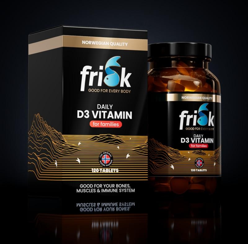 Frisk Vitamin D3 voor Families is een Noors vitamine D3-supplement. Gemaakt in Noorwegen door apothekers en ontwikkeld voor zowel volwassenen als kinderen (11+). Kwaliteit en zuiverheid getest – een veilige en eenvoudige manier om de dagelijkse vitamine D-inname te waarborgen.