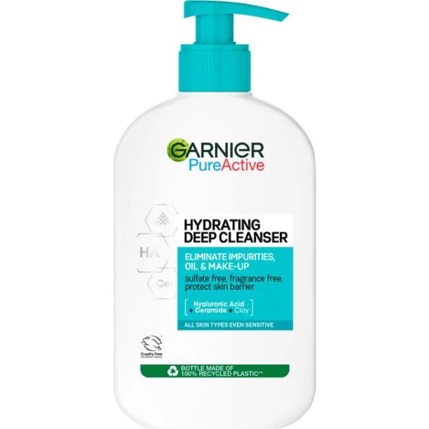 Garnier PureActive Hydraterende Gezichtsreiniger is een milde gezichtsreiniger, verrijkt met HYALURONZUUR, CERAMIDE en KLEI, verwijdert imperfecties en vermindert poriën & een onregelmatige huidtextuur, terwijl het de huidbarrière helpt beschermen.