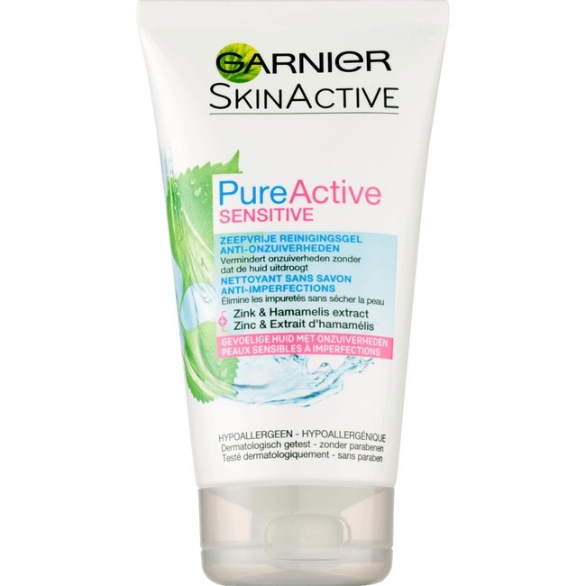Garnier Skin Naturals Pure Active Sensitive Zeepvrije Reinigingsgel is speciaal ontwikkeld om de gevoelige huid met onzuiverheden te reinigen. De hypoallergene formule bevat reinigend zink om onzuiverheden zichtbaar te verminderen en hamamelisextract om de huid te helpen kalmeren. Gebruik Garnier Skin Naturals Pure Active Sensitive Zeepvrije Reinigingsgel om je huid te ontdaan van onzuiverheden zonder dat dit je huid uitdroogt.