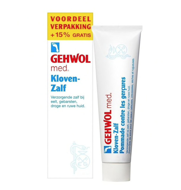 Gehwol Klovenzalf beschermt tegen kloofjes en verzorgt de ruwe, gesprongen huid. Bij regelmatig gebruik zal de huid haar elasticiteit en weerstand terugkrijgen.