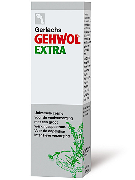 GEHWOL Extra is een universele voetverzorgingscrème voor de verzorging en bescherming van sterk belaste of afgematte voeten. GEHWOL Extra is een samenstelling van huidbeschermende vetten en speciale medicinale zeep met natuurlijk voorkomende oliën. Deze crème laat zich gemakkelijk in de huid masseren en maakt GEHWOL Extra bijzonder geschikt voor de dagelijkse, intensieve voetverzorging. Daarnaast heeft GEHWOL Extra een positief effect op koude voeten, wintertenen en overmatige voettranspiratie.