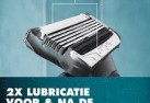 - 2x lubricatie: aangebracht voor en na de messen om een beschermend laagje op de huid aan te brengen