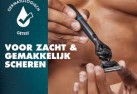 - 2x lubricatie: aangebracht voor en na de messen om een beschermend laagje op de huid aan te brengen