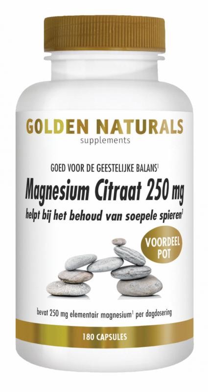 Golden Naturals Magnesium citraat 250mg (180 Vegetarische capsules)