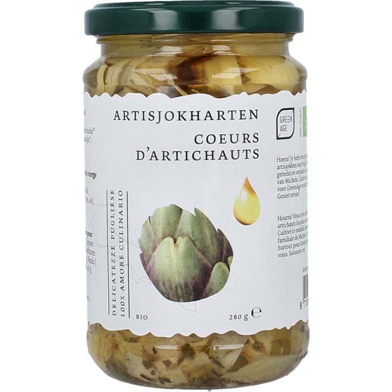 Artisjokharten* (62,7%), zonnebloemolie* (28,6%), extra vergine olijfolie* (7,1%), zout, witte wijnazijn*, peterselie*, basilicum*.