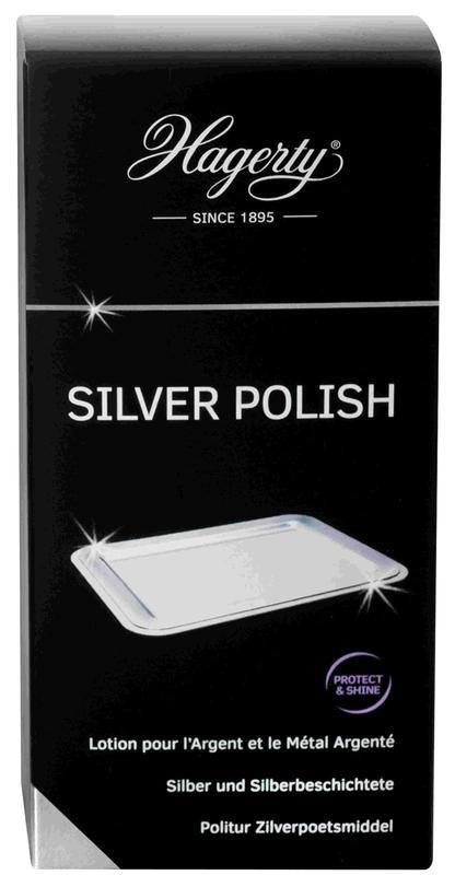 Een alles-in-één poetsmiddel voor zilveren en verzilverde voorwerpen. Reinigt en polijst. Bovendien zorgt het aanslagwerende bestanddeel R-22 voor een langdurige bescherming van het zilver. Aanbrengen met watten of een zachte, vochtige spons. Grondig inwrijven en enige ogenblikken laten inwerken. Nadien oppoetsen met een schone prop watten of eenvoudig afspoelen en drogen. Silver Polish, Hagerty's trouwe vriend voor zilver sinds 1895.