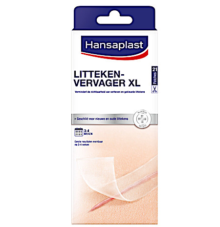 Hansaplast Littekenvervager is een transparante, zelfklevende patch, gemaakt van polyurethaan. Producten die gemaakt zijn van dit materiaal worden al jaren gebruikt in de professionele wondverzorging. De patches bevatten geen actieve ingrediënten (geneesmiddelen) die mogelijk bijwerkingen kunnen veroorzaken. Ze zijn een veilige en efficiënte manier om verheven en verkleurde hypetrofische en keloïde littekens effectief te verminderen.