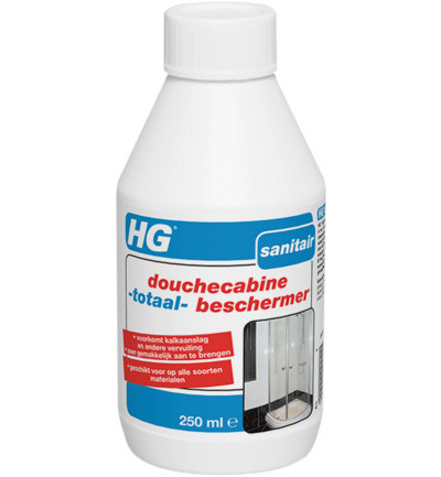 Dankzij HG douchecabine-totaal-beschermer worden alle materialen in en aan de douchecabine optimaal beschermd tegen kalkaanslag en vervuiling door zeepresten, badolie, huidvetten e.d. HG douchecabine beschermer maakt glaswanden, tegels, kranen etc. water en vuilafstotend. Er hoeft minder gereinigd te worden en bovendien zal reinigen veel eenvoudiger gaan. Reinig vooraf de te behandelen oppervlakken, zoals tegels, (plexi)glas, chroom, kunststof, aluminium of keramiek. Goed laten drogen en vervolgens een klein beetje HG douchecabine beschermer op een schone, droge doek doen en inwrijven met ronddraaiende bewegingen. Behandeling na ca 2 minuten herhalen en vervolgens het oppervlak met een zachte, droge doek uitpoetsen. Glasoppervlakken met een vochtige doek nawrijven.
