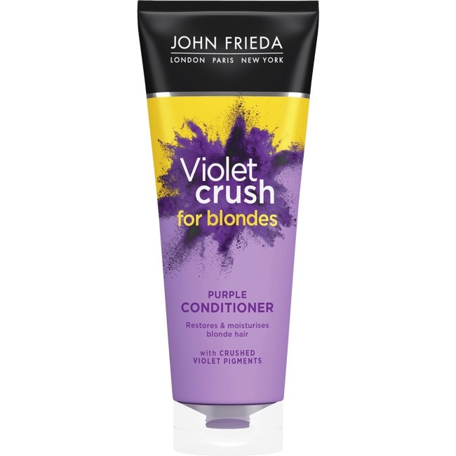 John Frieda Sheer Blonde Colour Renew Conditioner neutraliseert rossige en gele tonen, voor vernieuwd blond haar. De kleur corrigerende technologie revitaliseert en balanceert het blonde haar in slechts drie toepassingen. De optische verheldering technologie UV absorbeert licht en geeft een witblauwe gloed af zodat gekleurde blonde haartonen helderder lijken. De conditioner is geschikt voor alle varianten van grijs haar, blond geverfd haar of haar met blonde highlights.