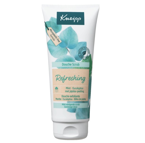 Verwen jezelf met Kneipp Mint Eucalyptus Douche Scrub. De douche scrub is een combinatie van verzorgende douchegel met een mild reinigende scrub. De Kneipp Mint Eucalyptus Douche Scrub met jojoba-peeling verwijdert op milde wijze dode huidcellen. De speciale formule met verzorgende amandel-, jojoba-olie en shea butter zorgt voor een gladde en zachte huid.