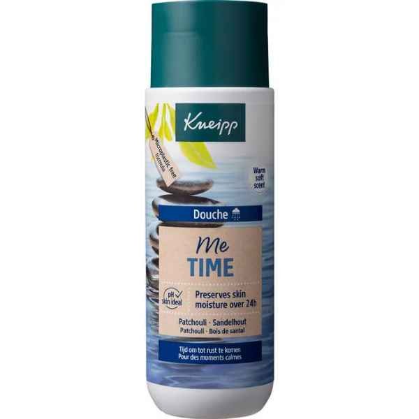 Geniet van een ontspannen moment met Kneipp douche Me-Time. Ervaar de zachte geur van natuurlijke patchouli-olie en hoogwaardig sandelhoutextract en neem de tijd om tot rust te komen en je hoofd leeg te maken. Deze douchegel met plantaardige voedende formulering en natuurlijke verzorgende olie respecteert en behoudt het huideigen microbioom en laat de huid zacht en soepel aanvoelen. Een wetenschappelijke studie bevestigt bovendien dat het vochtgehalte van de huid behouden blijft.