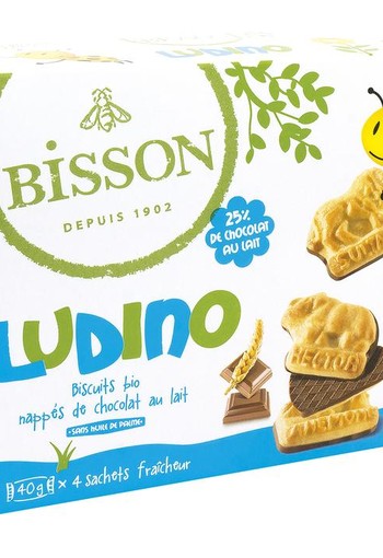 Bisson Ludino koekjes met melkchocolade 4 zakjes bio (160 Gram) Bio-zandkoekjes bedekt met melkchocolade € 4,99 BEKIJKEN