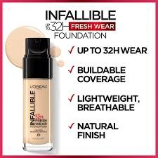 L’Oréal Paris Infaillible 24HR Fresh Wear Foundation 120 Vanille is een dunne, langhoudende foundation met een satijn finish voor een dewy uitstraling. De foundation is hoog dekkend en bevat SPF 25.