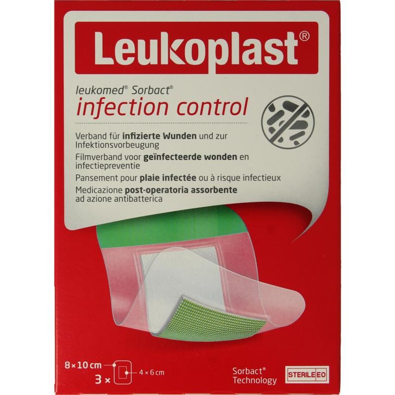 Leukoplast Hechtpleister leukomed sorbact 8 x 10cm (3 Stuks)