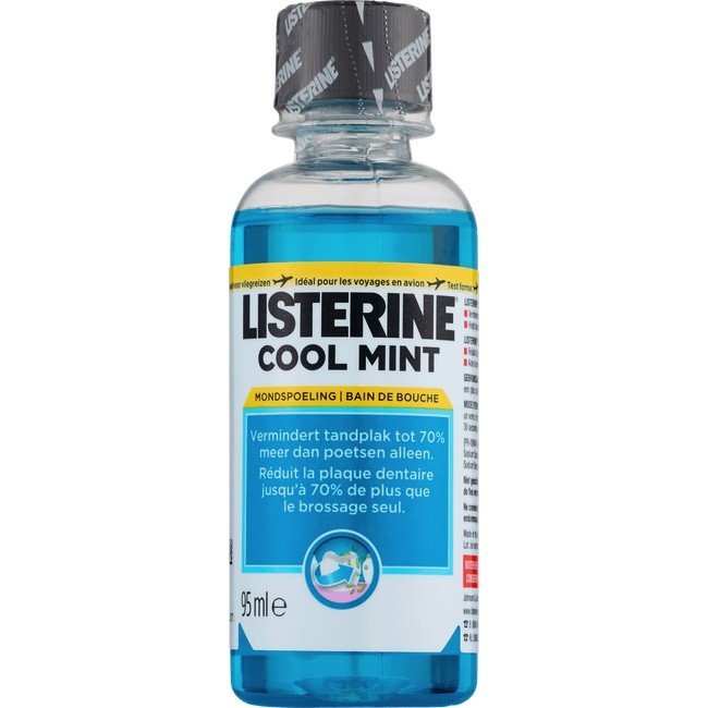 Listerine Cool Mint Mondwater Mini zorgt voor een optimale mondverzorging, remt bacteriën die tandplak en slechte adem veroorzaken. Gebruik de Listerine mondwater voor de dagelijkse preventie van tandplak en tandvleesontsteking. Hierdoor krijgen bacteriën veel minder kans om tandplak te vormen en helpt zo om jouw gebit sterk en schoon en het tandvlees gezond te houden. Listerine is ongeveer 12 uur werkzaam en met deze mini verpakking een ideaal formaat om mee te nemen op reis.