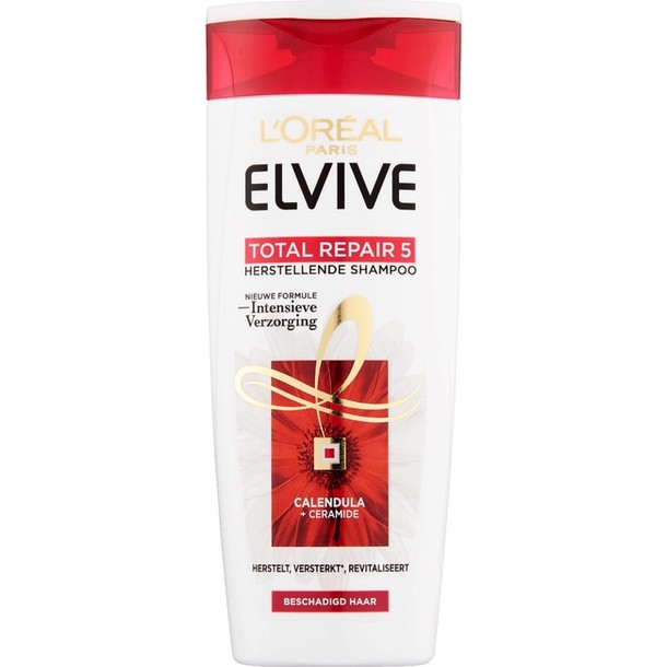 Voelt je fijne en zwakke haar futloos, stug en dof aan? Elvive Total Repair 5 shampoo met CICAMIDE + PRO-KERATINE herstelt de haarvezel en versterkt de structuur van het haar. Daarnaast geeft het je haren een regelmatig en glad oppervlak.