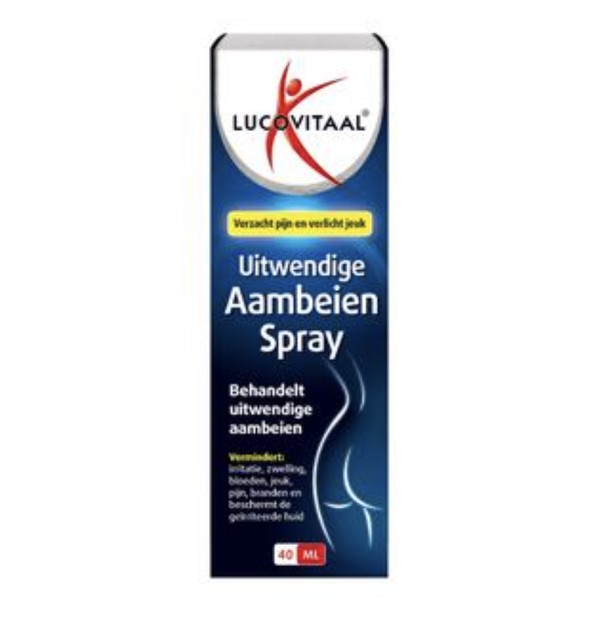 Lucovitaal Uitwendige Aambeien Spray is speciaal ontwikkeld om de klachten bij uitwendige aambeien en andere aandoeningen in het gebied rondom de anus te behandelen. Deze verkoelende spray heeft een verlichtende werking bij pijn, jeuk, zwelling, bloedingen, branderig gevoel, vochtafscheiding of een combinatie van deze klachten. Het voorkomt dat de geïrriteerde huid in aanraking komt met vocht of ontlasting waardoor de klachten kunnen verergeren.