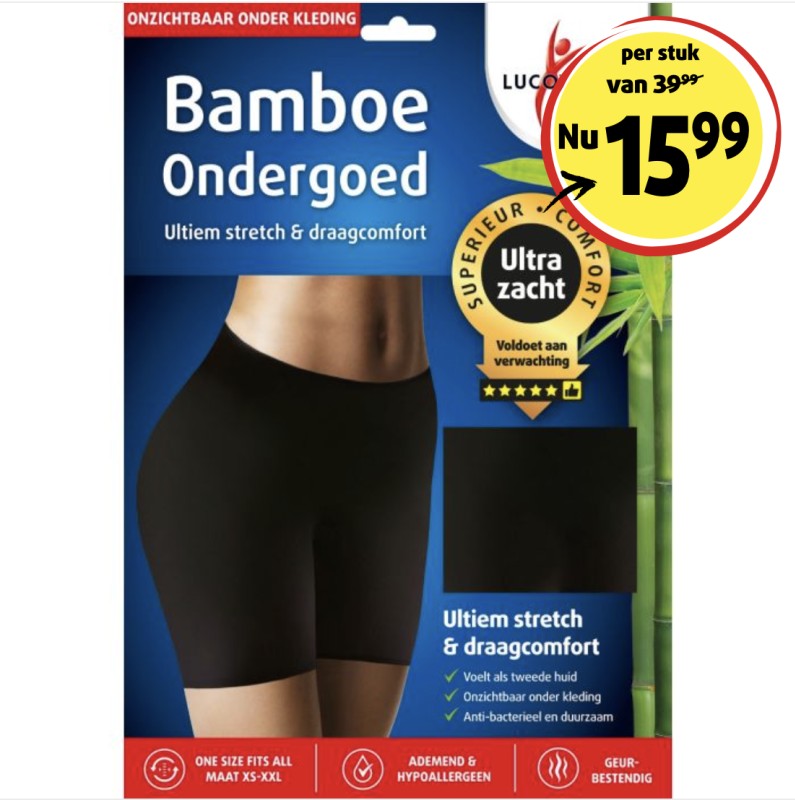 Lucovitaal Onzichtbare Dames Boxer Ondergoed is gemaakt van bamboe en is hypoallergeen en anti microbieel waardoor geschikt voor mensen met een gevoelige of allergische huid. De microgaatjes in Bambolux® absorberen en verdampen zweet 4x sneller waardoor het ondergoed lekker fris blijft, thermo-regulerend is en daarom koel in de zomer en warm in de winter voelt. De ultieme stretch en zachte bamboevezel zorgt ervoor dat deze boxer perfect aansluit en als een tweede huid aanvoelt, onzichtbaar is onder kleding en `one size fit all`, 1 maat is die iedereen past! U krijgt geen spijt van het superieure ondergoed van Lucovitaal door het ultieme stretch & draag comfort en onwijs ultra zachte kwaliteit!