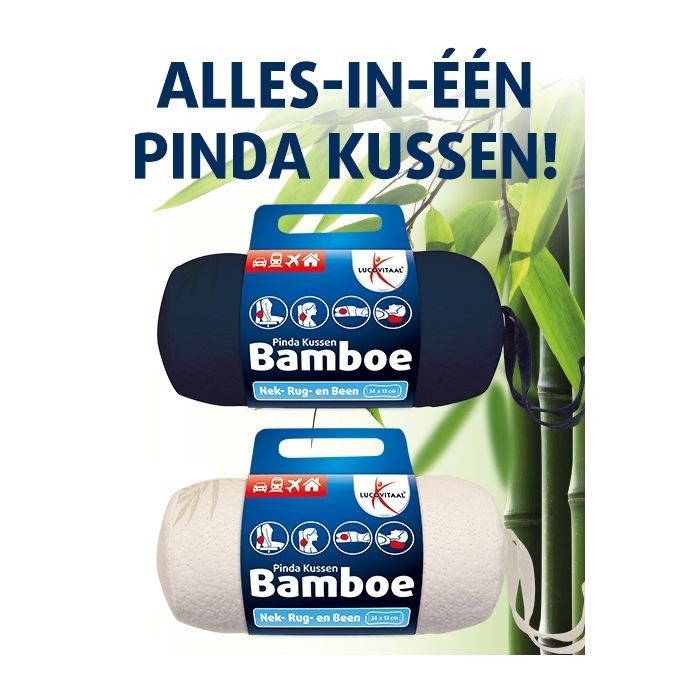 Met zijn unieke ‘pinda’-vorm kan het Lucovitaal Bamboe kussentje worden gebruikt als nek-, hals-, lende- of been ondersteuningskussentje! Het kussentje reageert op lichaamstemperatuur en -gewicht om zo ongeëvenaard comfort, drukvermindering en ergonomische ondersteuning te bieden. Bovendien heeft het kussentje een perfect ruimtebesparend formaat, ideaal voor thuis, onderweg en in het vliegtuig! De 100% Bamboevezel hoes (afneembaar en wasbaar) met draaglus is ademend, antibacterieel, hypoallergeen en voert warmte op natuurlijke wijze af. Het ultieme alles-in-1 comfort kussentje dat in geen enkel huishouden mag ontbreken! Verkrijgbaar in de kleuren wit en blauw.