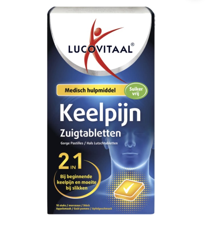 Lucovitaal Keel zuigtabletten is een medisch hulpmiddel en helpt bij het verlichten van keelpijn, hoest en heesheid. Daarnaast biedt het bescherming aan het slijmvlies van de slokdarm tegen schadelijke ziekteverwekkers en ongunstige omgevingsfactoren. Dit medisch hulpmiddel helpt ter verlichting van droge, vochtige, irriterende of allergische hoest en voor de behandeling van een geïrriteerde keel.
