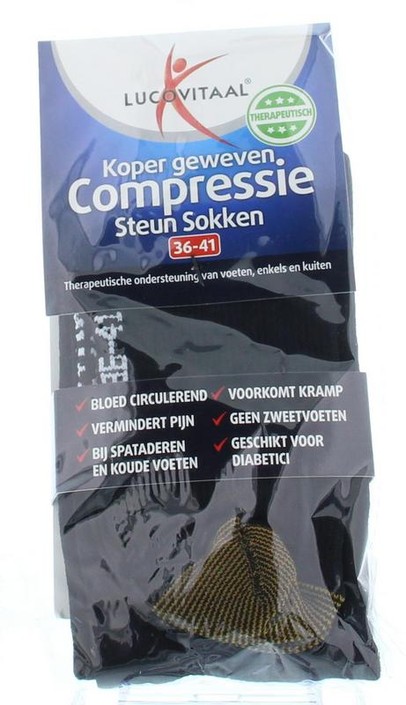 Lucovitaal Koper compressie steunsok 36 - 41 (1 paar) wit/ zwart