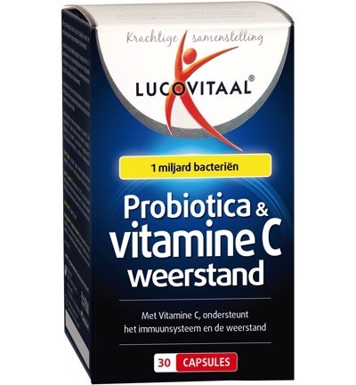 Vulstof (maltodextrine), ascorbinezuur (vitamine C), gelatine, probiotische culturen: lactobacillus plantarum, bifidobacterium lactis, streptococcus thermophiles.