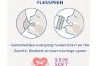 De MAM flesspenen zijn gemaakt van SkinSoft™ Silicone en voelen extra zacht en comfortabel aan dankzij de platte en unieke vorm. Omdat de flesspeen lijkt op mama's borst, geeft dit je baby een vertrouwd gevoel. Daardoor accepteert 94% van de baby’s de MAM flesspenen³. Zo kan je borstvoeding en flesvoeding ook moeiteloos combineren.