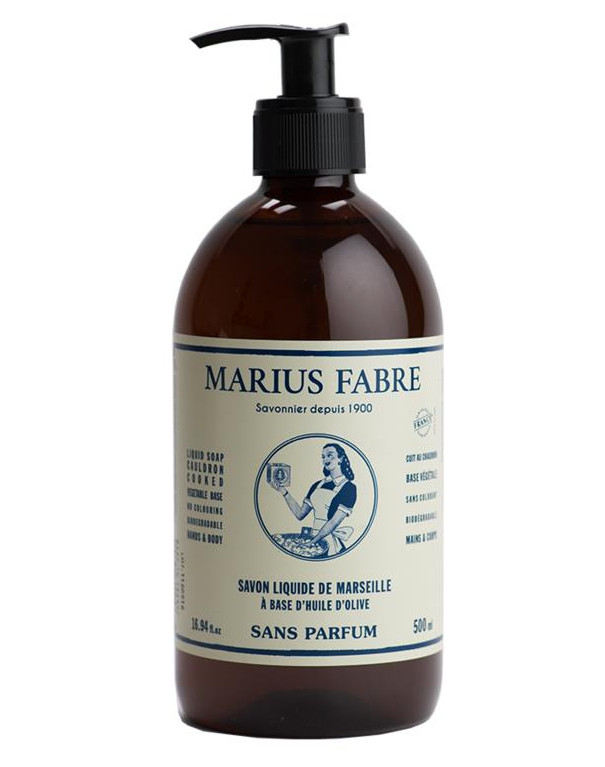 Marseille Zeep ZONDER parfum uit de Nature serie van Marius Fabre. Deze vloeibare Marseille zeep wordt op de traditionele ambachtelijke wijze “la méthode traditionnelle marseillaise” in ketels gekookt. Daar vindt het verzepingsproces plaats. De basis van deze vloeibare zepen is olijfo