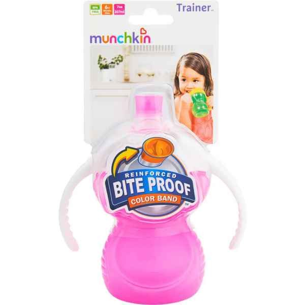 Munchkin Click Lock Chew Proof Trainer Cub is een kauwproefbeker die zacht is voor zacht tandvlees, want hoewel een tuit taai moet zijn hoeft hij niet hard te zijn. Deze innovatieve cups hebben een eenvoudig afsluitdeksel dat sluit om een 100% lekvrije afdichting te creëren. Je kunt het bekerslot zien, horen en voelen, zodat je drievoudig verzekerd bent tegen dribbels en druppels.