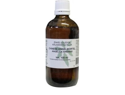 Enkelvoudige kruidentinctuur gemaakt met 100 gram gedroogde wortels van Angelica sinensis / Chinese Engelwortel.