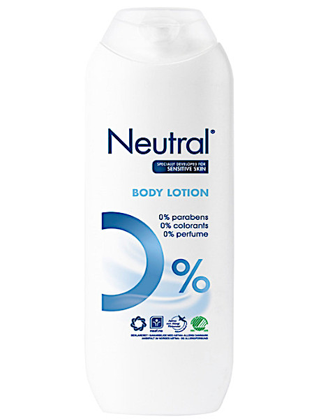 Neutral Bodylotion bevat glycerine, jojoba olie en sheaboter om de huid te hydrateren en te verzorgen.