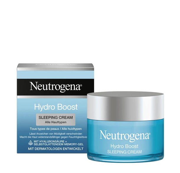 Neutrogena Hydro Boost Sleeping Cream maakt je huid beter bestand tegen vochtverlies tijdens de nacht en is geschikt voor alle huidtypen. De crème bevat een combinatie van hyaluronzuur en voedende ingrediënten. Beschermt het vochtgehalte en ondersteunt het herstellend vermogen van de huid. Voorziet de huidcellen de hele nacht van vocht om tekenen van vermoeidheid te vervagen. Niet plakkerig, de gelcrème textuur trekt snel in de huid Rust voor jou. Rust voor je huid.