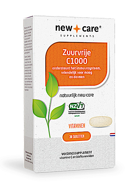 New Care Zuurvrije C1000 ondersteunt het immuunsysteem, vriendelijk voor maag en darmen Inhoud 30 tabletten