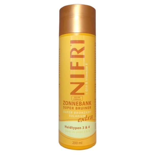 Nifri Sunbed Super Tanner 3 & 4 is speciaal ontwikkeld voor huidtype 3 en 4. De formule zorgt voor een prachtige tint na gebruik onder de zonnebank. Bovendien heeft de formule Q10 en vitamine E toegevoegd.