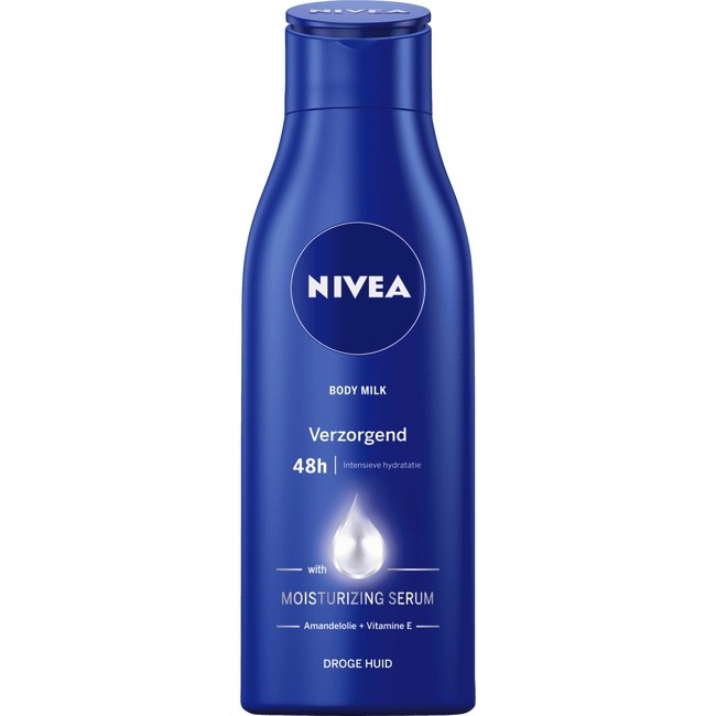 NIVEA's gepatenteerde formule is verrijkt met VERZORGEND SERUM, een unieke samenstelling van het huideigen hydraterende vermogen, verzorgende lipiden en voedende oliën. NIVEA Verzorgende Body Milk bevat 2x meer Amandelolie*