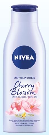 Met Nivea Kersenbloesem & Jojoba Body Olie in Lotion ervaar je het verwennende gevoel van een olie in een snel intrekkende lotion. Verwent je zintuigen voor 24 uur lang een zachtere huid die heerlijk ruikt. De nieuwe NIVEA Body Olie in Lotion lijn bestaat uit 4 verwennende varianten: Kersenbloesem & Jojoba Body Olie in Lotion Vanille & Amandel Body Olie in Lotion Roos & Argan Body Olie in Lotion Cacao & Macadamia Body Olie in Lotion