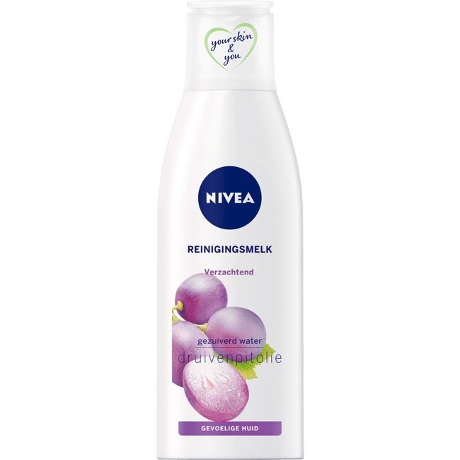 NIVEA Essentials Sensitive Reinigingsmelk verrijkt met Druivenpitolie en Dexpanthenol. Zacht voor de huid, maar reinigt de huid grondig en verwijdert (oog) make-up. Helpt het de drie tekenen van een gevoelige huid te verminderen: