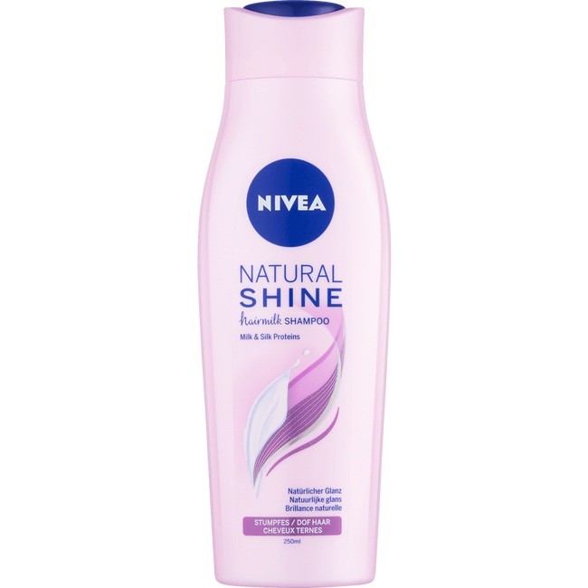 NIVEA Hairmilk Natural Shine Shampoo voedt dof haar intensief en maakt het zichtbaar gezonder. Je haar valt natuurlijk in model en de glans wordt versterkt. De formule met natuurlijke melk- en zijdeproteïnen verzorgt je haar van binnenuit voor gevoed en zichtbaar gezond haar.