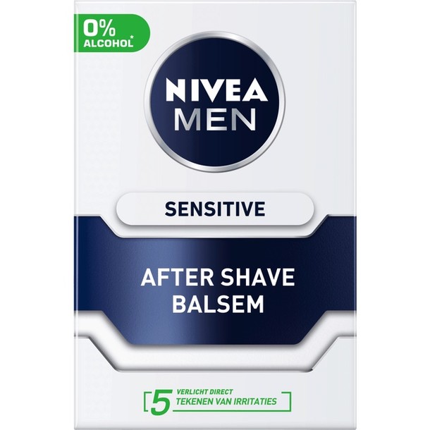 Nivea Men Sensitive Aftershave balsem is speciaal ontwikkeld voor mannen met een gevoelige huid die hun geïrriteerde en rode huid onmiddellijk willen verzachten. De formule met 0% alcohol is extra zacht. Verrijkt met Kamille en Hamamelis, trekt het snel in en verzacht het je huid na het scheren zonder een vettig of plakkerig gevoel na te laten.