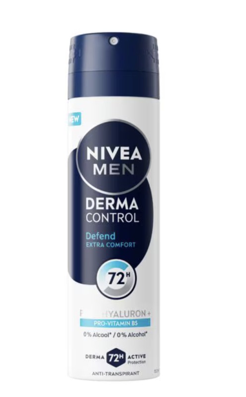 NIVEA MEN Derma Control Defend Deodorant Spray biedt 72 uur* betrouwbare anti-transpirant bescherming en is speciaal ontwikkeld voor de gevoelige mannenhuid.De formule met Pure Hyaluron en ProVitamine B5 versterkt de huid en helpt te beschermen tegen jeuk, terwijl het de huid voedt. Dankzij de milde samenstelling zonder ethylalcohol is deze deodorant geschikt voor dagelijks gebruik en zorgt hij voor langdurig comfort. De huidverdraagzaamheid is dermatologisch getest, zodat je kunt vertrouwen op effectieve bescherming die ook zacht is voor je huid. Met Derma 72uur* actieve bescherming kies je voor een deodorant die niet alleen beschermt, maar ook zorgt voor extra comfort en een gezond huidgevoel. *Instrumentele test, 20 vrijwilligers