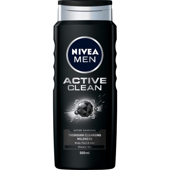 Nivea Men Active Clean Douchegel. Voor mannen die intensieve reiniging en verfrissing willen. Deze 3-in-1 douchegel met natuurlijk Actief Houtskool: werkt als een vuilmagneet, reinigt diep zonder je huid uit te drogen.