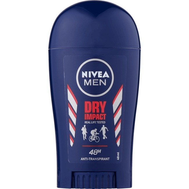 NIVEA MEN Dry Impact Anti-Transpirant Stick met mineralen garandeert 48 uur lang een effectieve transpiratie-regulerende werking met een aangenaam droog huidgevoel en bescherming tegen onaangename lichaamsgeuren. Deze anti-transpirant biedt betrouwbare bescherming tegen transpireren en een milde verzorging.