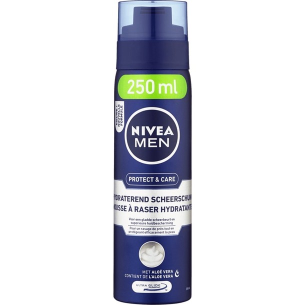NIVEA MEN Protect & Care Scheerschuim zorgt voor een extra gladde scheerbeurt en biedt bescherming tegen snijwondjes en irritaties. De formule met Aloë Vera en pro-vitamine B5 verzorgt de huid en beschermt haar tegen uitdrogen.
