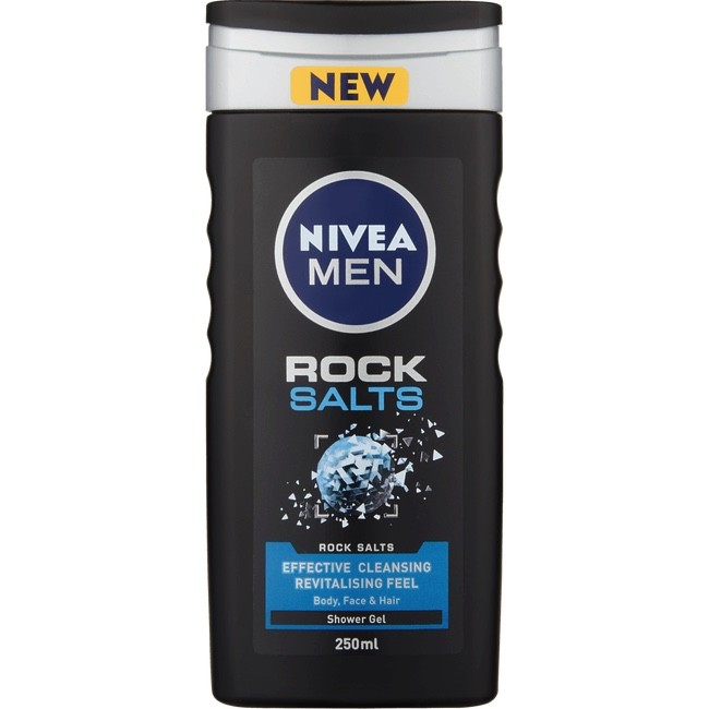NIVEA MEN Rock Salts Shower Gel is speciaal voor mannen die diepe reiniging en verfrissing willen. De formule met gemalen rotszouten zorgt ervoor dat je huid en haar grondig wordt gereinigd en verzorgd. NIVEA MEN Rock Salts Shower Gel is zowel voor gezicht, lichaam en haar.